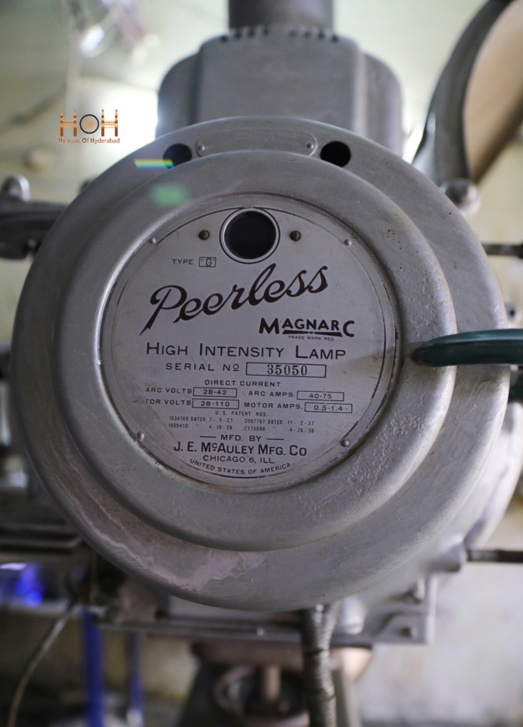 The story began long before I was born. In the late 1930s, Nawab Jafar Nawaz Jung built Yakut Mahal with a vision ahead of its time. The theatre houses Peerless Magnarc high-intensity carbon-arc projectors, manufactured in Chicago by J. E. Maculey Mfg. Co. in 1927.