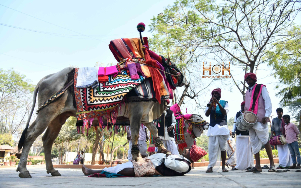 Shilparamam hosts Sankranti Sambaralu every year as part of its seasonal cultural calendar. The festival brings together rural art forms, traditional crafts, folk music, and harvest rituals from across Telangana and Andhra Pradesh. Visitors get to witness practices that usually happen in villages during Sankranti — from Gangireddu performances to Haridasulu, Gobbillu, and handicraft stalls.
