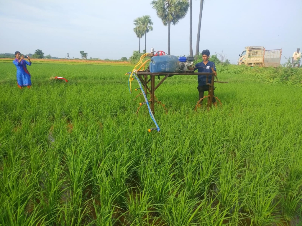 Over the years, I’ve designed several agricultural tools such as the four-in-one cycle weeder, paddy hand weeder, manual seed-sowing tool, portable spraying machine, and a solar-powered crop protector that keeps birds and wild animals away.